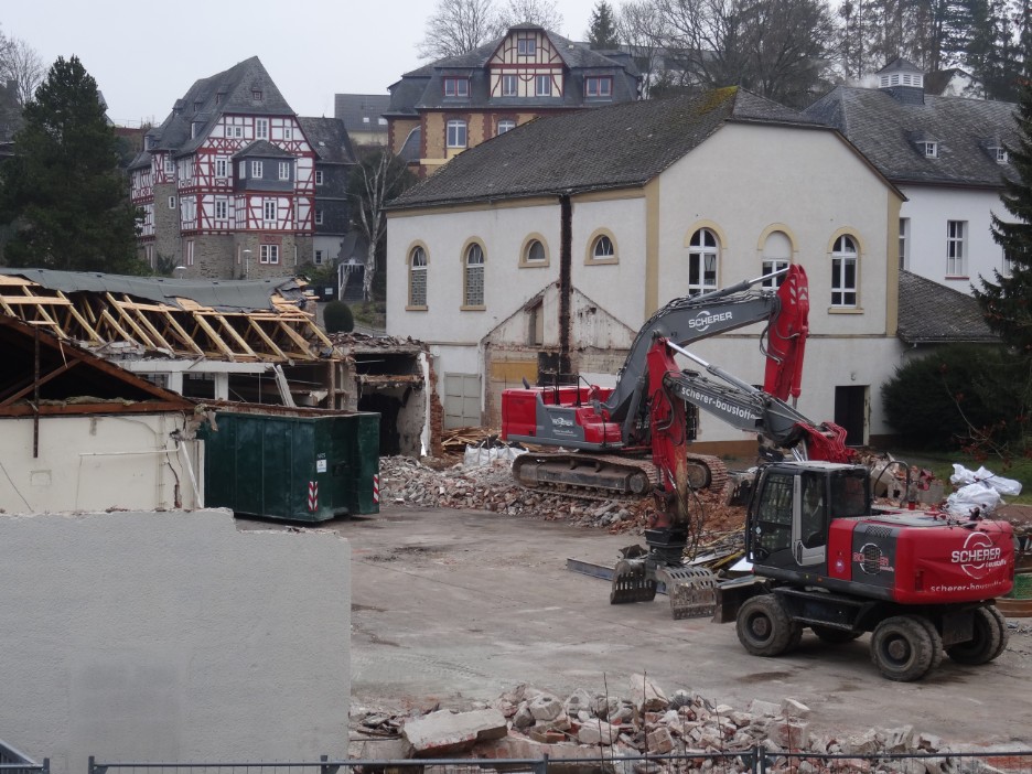 Im Januar 2020 wird der Abriss der Turnhalle vorbereitet.
